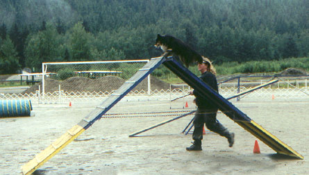 Tess on A-Frame NADAC Agility Trial, Juneau, AK 7-28-02 Photo By Cinda Carbone