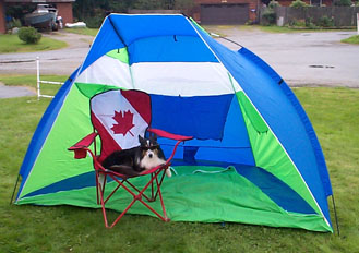 Tess in our new cabana shade tent Front Yard, Juneau, AK 8-18-02